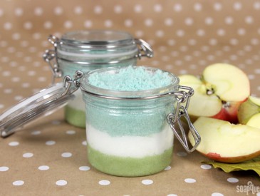 With summer quickly approaching, now is the perfect time to prep your skin for swimsuits and tank tops. Scrubs help get rid of dry winter skin. They also help moisturizer absorb, leaving your skin soft and smooth. Handmade scrubs are even better because you can customize the ingredients and create a fun design, like the green and white layers in this Apple Sage Salt Scrub.