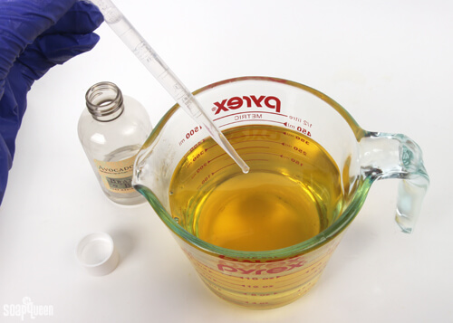 FOUR: Once fully melted, add the avocado extract and stir to combine.
