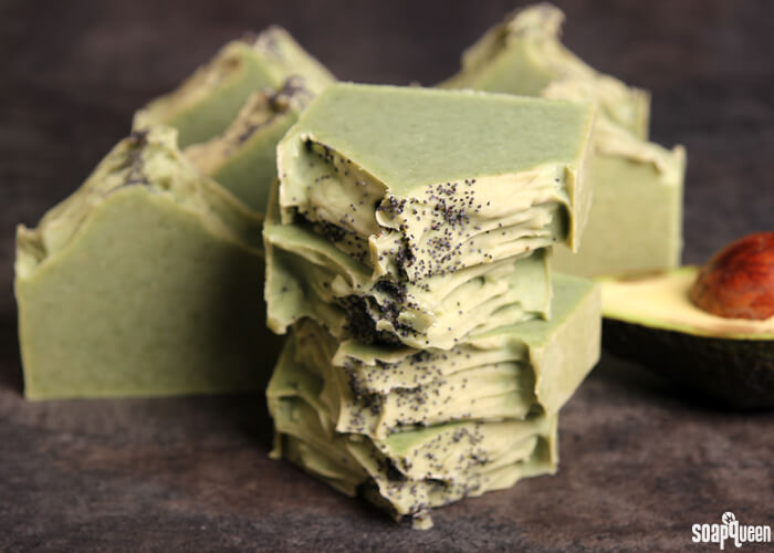 1. We don’t – fresh ingredients like avocado don’t work well in melt and pour because they can go bad in just a few weeks. Learn more about that here: https://soapqueen.com/bath-and-body-tutorials/tips-and-tricks/purees-fresh-ingredients-melt-pour-soap/