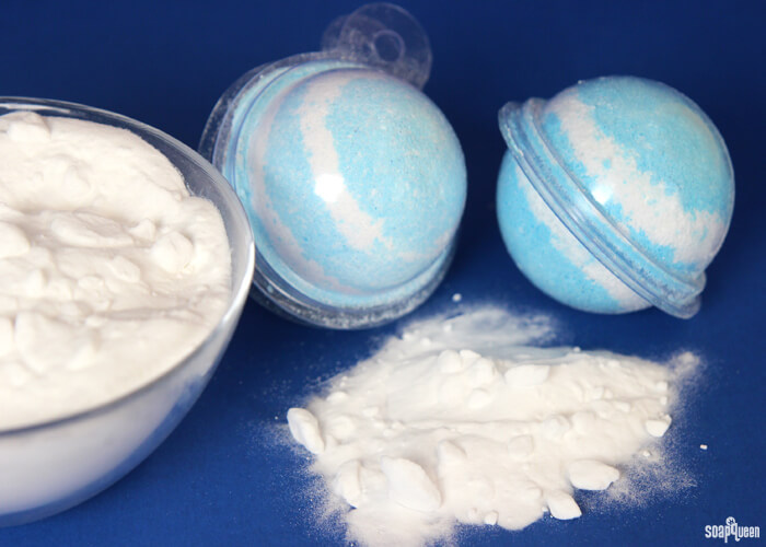 Another great recipe is the one we use for our Bath Bomb Machine. It has kaolin clay, which helps make the bombs a bit sturdier (so they’re less likely to crumble). It also has some cocoa butter to moisturize the fizzies. You can find that recipe here: http://www.soapqueen.com/bath-and-body-tutorials/bath-fizzies/how-to-use-our-bath-bomb-maker/
