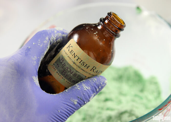 - Add the Kentish Rain Fragrance Oil and use your hands to mix thoroughly.