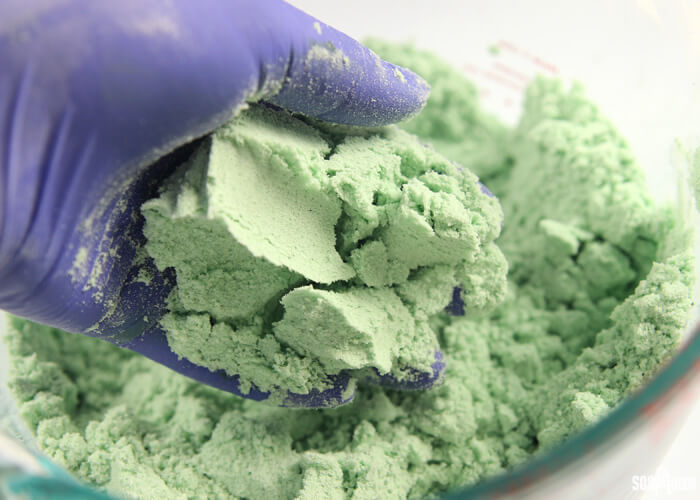 Before molding the fizzies, squeeze the mixture in your hand. If it holds its shape, it’s ready to mold. If not, spray 1-2 times with the witch hazel, mix and test again. Repeat until the mixture holds its shape when squeezed.