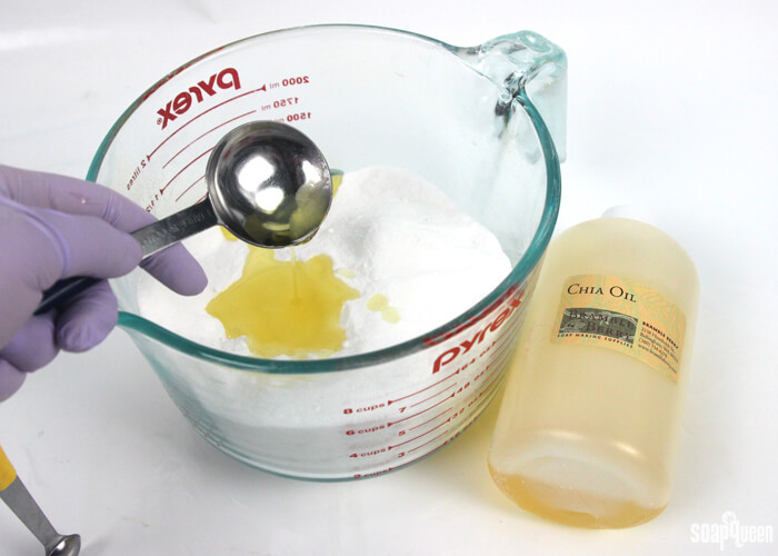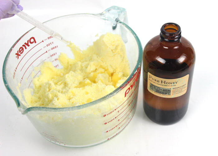 FOUR: Add 6 mL of Crisp Apple Rose Fragrance Oil and 4 mL of Pure Honey Fragrance Oil and mix well.