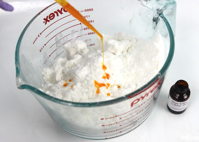 THREE: Add 2 mL of Daisy Yellow LaBomb Colorant and use your hands to mix it in fully.