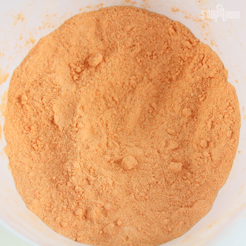 THREE: Mix the powders together and then add the Mango Mango Fragrance oil. To fully disperse the fragrance oil, put on some gloves and handmix the powders and oil together.