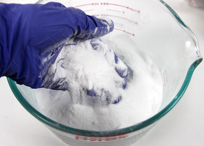 • In a large bowl, combine sodium bicarbonate and citric acid. Use your hands or a mesh strainer to remove any clumps.