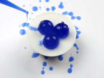 FIVE: Unmold by pressing the bottom of each cavity. Reheat the remaining blue soap on 5 second bursts. Spritz the top of the soap with alcohol and drizzle the blue soap on using a dropper. Then, spritz with alcohol again to pop any bubbles. There is no right or wrong way to do this, so have fun! Let the top harden for about 30 minutes and then enjoy! To avoid glycerin dew, wrap them immediately in plastic wrap, set them under a running fan or utilize another airtight packaging option.
