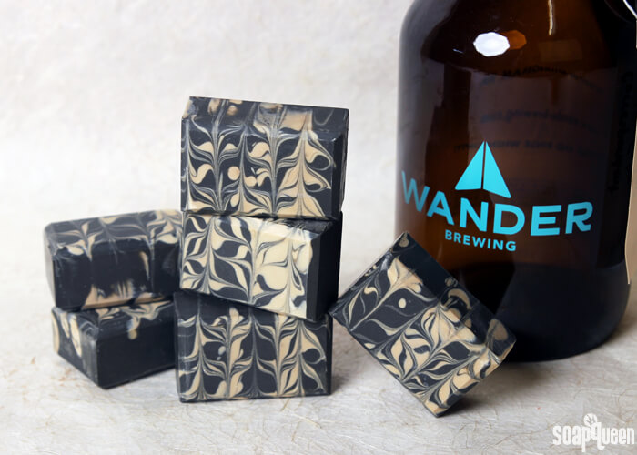 Of all the alternative liquids to make cold process soap with, beer may be one of the most popular. The natural sugars in beer add lather to the final bar, and are great from a marketing standpoint. If you’re a beer fan, who wouldn’t want to bathe with their favorite brew? For these Charcoal and Cedar Stout Bars, I teamed up with a local brewery, Wander Brewing. Wander is just a few blocks away from the Bramble Berry warehouse and is popular in the Bellingham community. I used their rich Correspondent Foreign Extra Stout for this project, and it served as the perfect base for these woodsy bars.