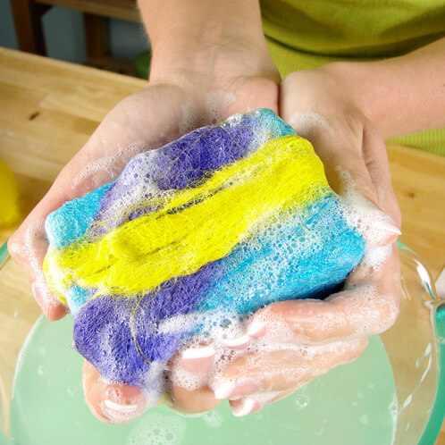 VARIATION: Martha (as in my idol, the divine Miss Martha Stewart) puts her soap in old pantyhose before she felts. I think it’s a great technique if you have different layers and colors. It keeps your design intact. There are also techniques that use felting boards or washing boards instead of using your hands. This would save you a little bit of time and elbow grease, but I’ve always done it the old fashioned way.
