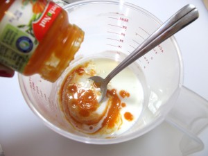 All of it I substituted pumpkin mush for the carrot baby food since I have a freezer full of the stuff and it gives off the same creamy orange color.