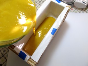 Check out that beautiful orange color! I don’t add fragrance to this soap since it is for babies or people with sensitive skin but if you’d like to add a fragrance or essential oil do that now. Then pour into your mold!