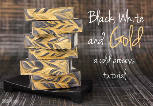 Keep in mind that this soap does have a light grey lather, although it’s almost unnoticeable on your hands. If you’d like a white later, consider adding 1/2 tsp. or even 1/4 tsp. dispersed Black Oxide colorant (less than we used), but keep in mind you won’t end up with the same black color in the photos. Additionally, the gold topped mica won’t last for more than a wash or two, but we still think it’s worth it!