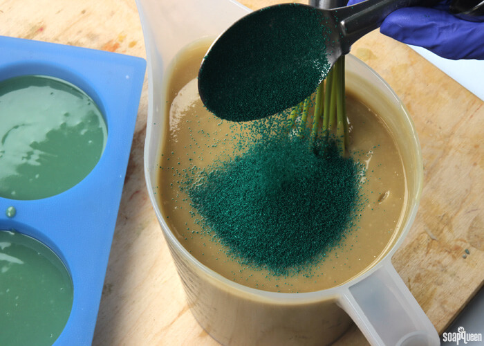SIX: To one container, add 1 tablespoon dispersed Hydrated Chrome Green Oxide. Use a whisk to fully mix in the colorant.