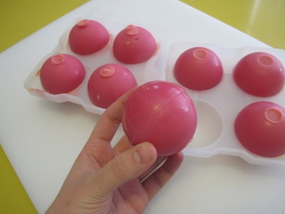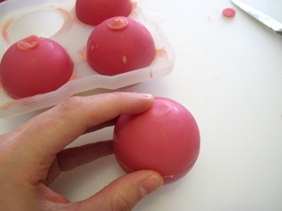 This recipe fits nicely into two of the round sphere molds. Tutorial by Amanda from Lovin’ Soap.