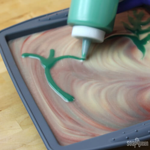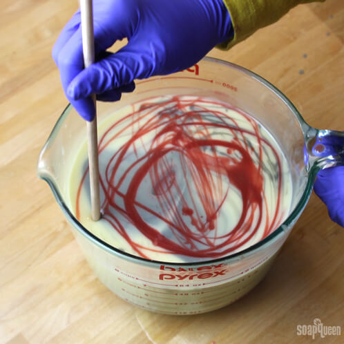 - Using a spatula, chopstick or dowel, swirl the soap by running the tool through each of the entry points once. Only once! You want to swirl but not mix the soap.