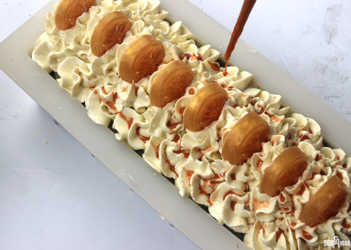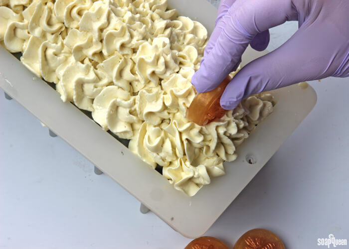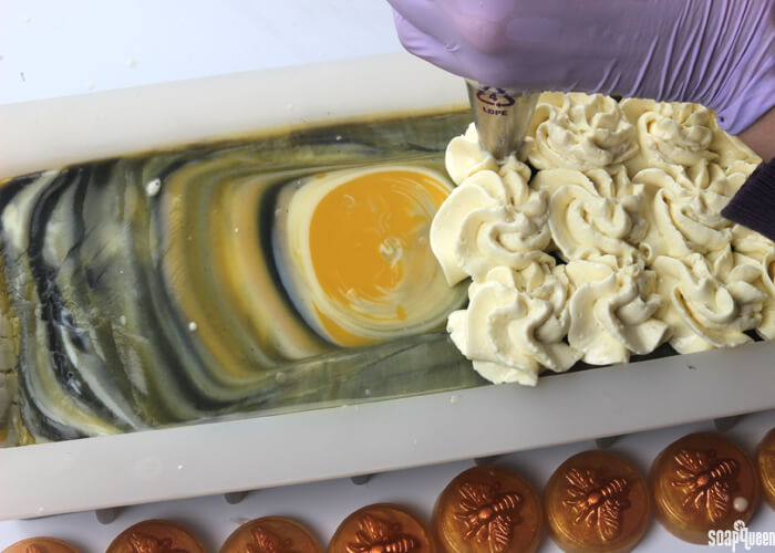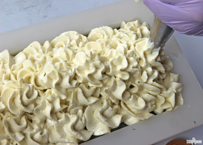 Make sure the fragrance you use doesn’t discolor, otherwise it can turn the frosting brown. Read more about that in the Why Did My Soap Turn Brown post: https://soapqueen.com/bath-and-body-tutorials/tips-and-tricks/why-did-my-soap-turn-brown/