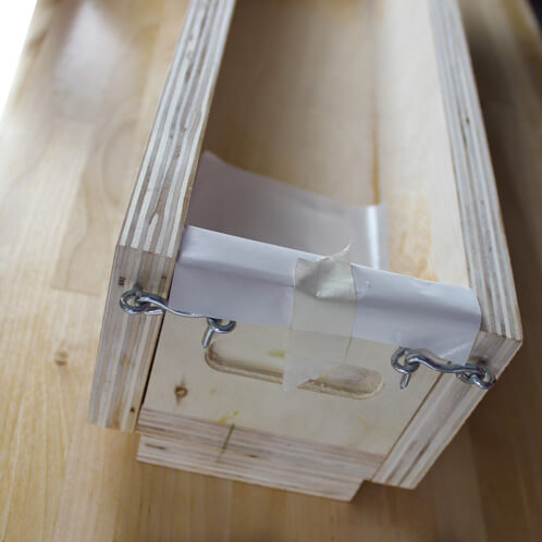 With this technique we’ll be cutting out one big piece of freezer paper that covers the bottom of the mold and the long sides. Then we’ll cut two smaller pieces that will just cover the ends. This technique works on any mold.