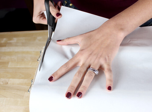 FIVE: Cut along the creased lines again and cut the freezer paper in half.