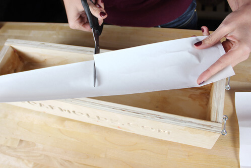 THREE: Place the paper inside the mold to make sure that it fits. Trim the edges if you need to make any adjustments.