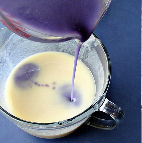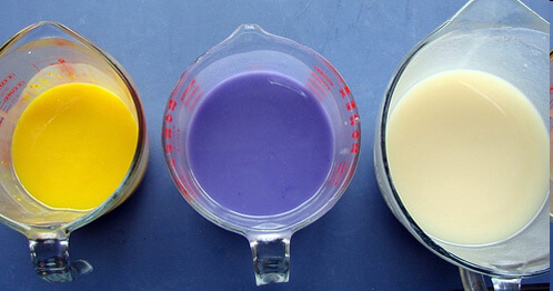 Step 1: At a light trace, separate ¼ to ½ of the batch into two smaller containers; one for each color.