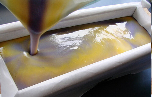 Loaf or log type molds are perfect for in-the-pot swirling because the pattern is formed during the pour. This style is also recommended for layering and for double-pouring two colors side-by-side lengthwise. Keep in mind, this deep and narrow mold design makes it difficult to create linear swirls that go all the way through the soap.
