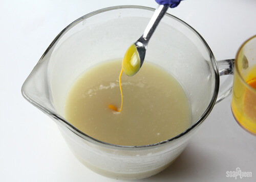 If you’re worried about too much extra oil in your soap, you can decrease your superfat slightly. You can also mix the colors in your premade oils. To do that, use a spoon or a dropper to transfer some of your soaping oils into a separate container. Then, mix your colors in and add them at trace. You can see that in action in the Making Sunshine Soap video on Soap Queen TV: https://soapqueen.com/bath-and-body-tutorials/cold-process-soap/making-sunshine-cold-process-soap/