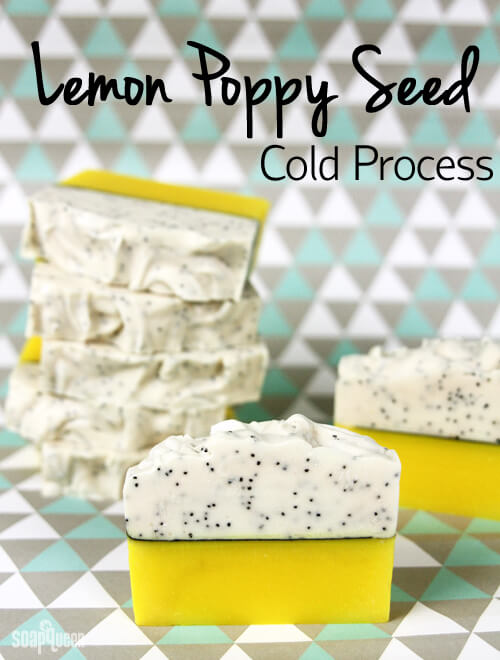 There is something about the color yellow that just screams, “happy!” If you are looking for a project full of cheer, this Lemon Poppy Seed Cold Process Tutorial is the soap for you. Scented with the bright Lemon Verbena Yankee Type and the bubbly Champagne Fragrance Oil, it smells as sunny as it looks.