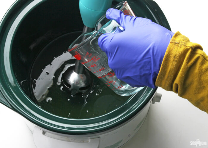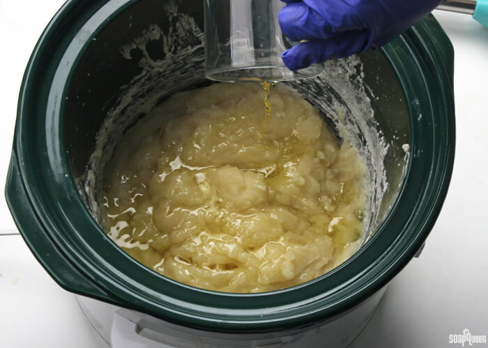 - Melt and combine the palm and coconut oils. Add the shea butter, avocado butter to the warmed oils and still until melted. Add the olive, and avocado and stir to combine. Pour the oils into your Crock Pot’s pot. Slowly add the lye water to the oils.