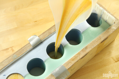 I had an idea that I thought would produce a similar bar of soap and then I saw this and thought great minds DO think alike. However, when I read the process it is totally different from what I was thinking so I want a professional opinion. I’ve NOT had good luck with the vertical wood mold but want to keep trying and I thought I would put a paper towel tube in the center for the center round color and pour two colors at the same time on each side. My thought was if the two colors are poured at the same time, they should meet equally and a second person could pour the center soap to keep the pressure semi equal. Any thoughts or opinions? Thanks for everything!