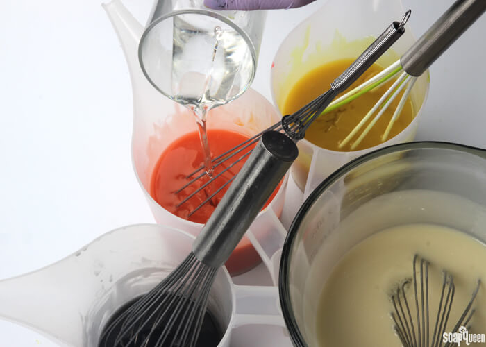 - Slowly and carefully add the lye to the water and gently stir until the lye has fully dissolved and the liquid is clear. Set aside to cool.