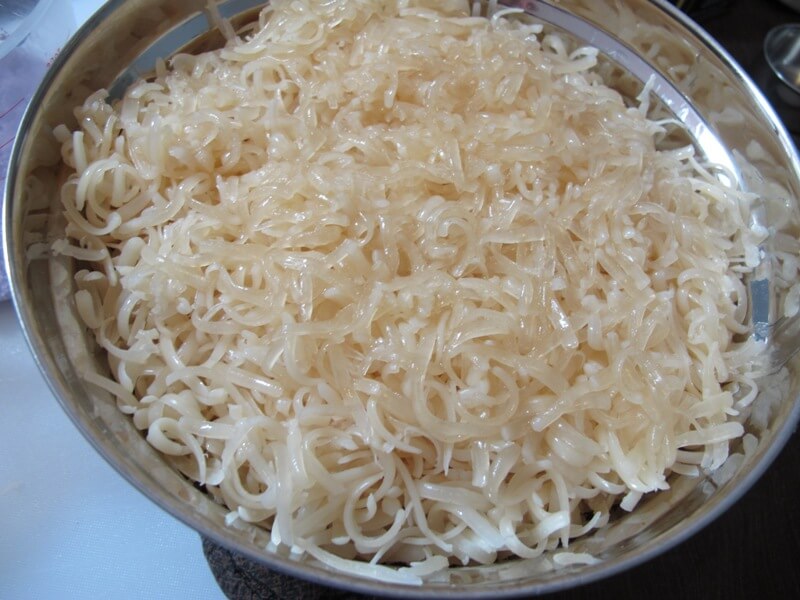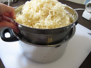 Shred 28 oz of soap. I happened to have an uncolored/unscented soap perfect for this hand-milled project. See if you have any soap where the fragrance has faded away…those would be perfect also. To shred the soap you can use a cheese shredder…or my favorite tool…a Salad Shooter! I don’t think I would do rebatch or hand-milled soap without a Salad Shooter.