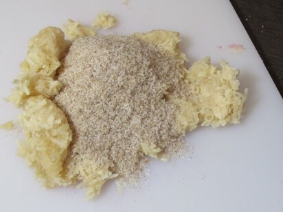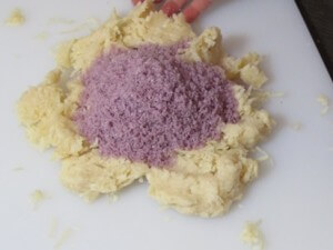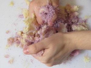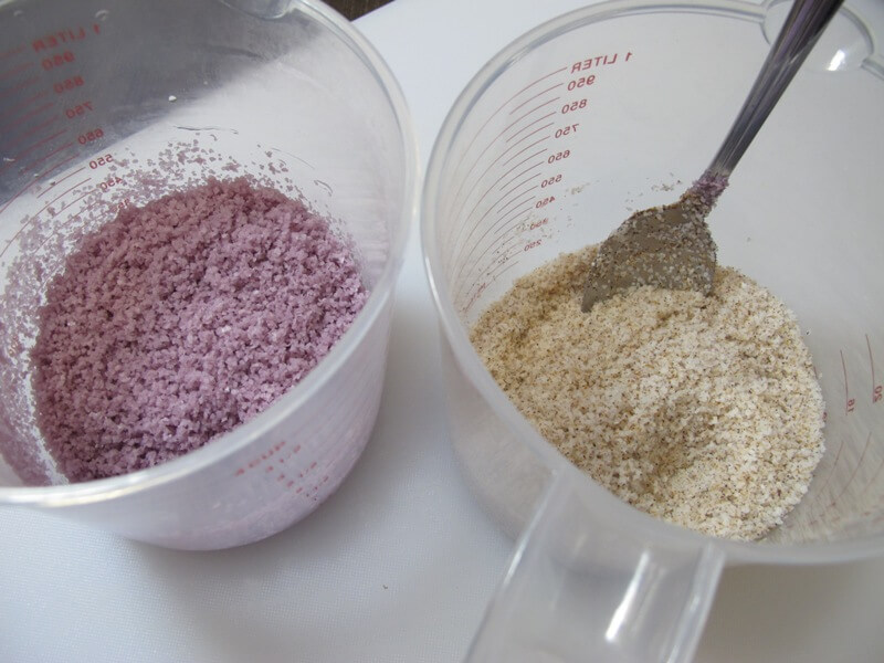 Dump it onto your cutting board and mix in the lilac scented, walnut shell, salt mixture.