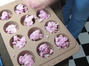 Once you have it all mixed, divide it up into your molds. Just eye ball it.