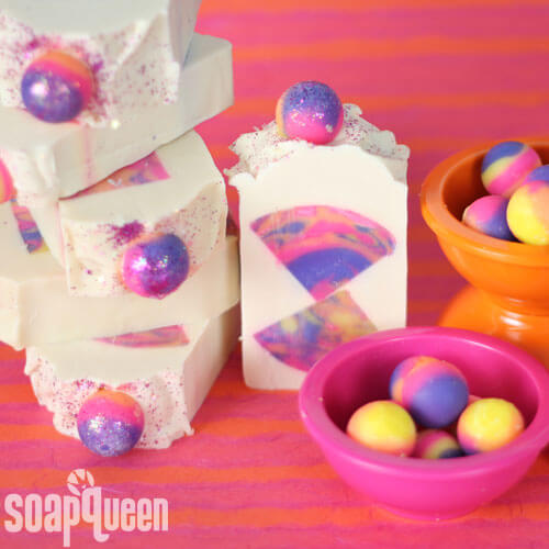 This is one FUN looking soap, in phase 1, what size pipe do we use? and can the caps be bought with the pipe? Phase 2, does the water that is used to mix the goats milk powder have to be discounted from the water that goes in the lye? Or do we discount the total amount of milk that goes in the oil, from the water? I hope I make sense? Also, if I am using a smaller size mold, I would have to buy a piece of pipe that would fit the entire length of that mold, correct? Not sure if this recipe could be used in a smaller mold then what you all are using, if using a smaller pipe we would have to find something smaller then a soup can to push that tubed soap out. I’m a beginner soaper but would just absolutely love to someday soon make this awesome soap. While I was watching I was also thinking to myself that MAYBE a pringles can would work for a shorter mold. I live in Canada, the shipping costs are a bit up there when ordering from brambleberry, but as soon as I can save up enough money I have a goal to make a nice order from you, I just dream of having me some nice brambleberry products…I can’t WAIT <3 Thanks for posting this video, I really can't get enough of Anne Marie…she's pretty famous in my house.