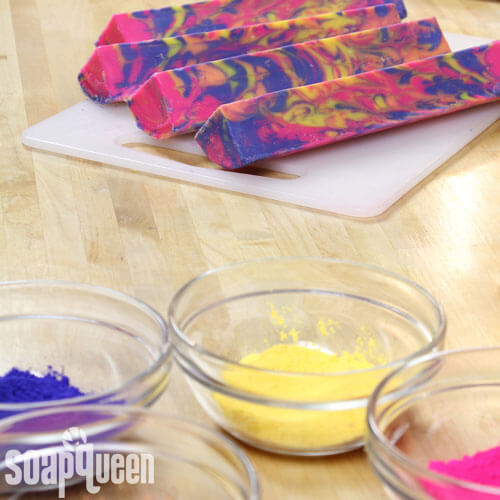 That was fun! I bet you want to learn how to make this gorgeous soap now. Since this is a more advanced project, you should be comfortable making CP soap. This basic series on making cold process soap is a great place to start. How to line a wood mold is also very helpful for this project, learn how here.