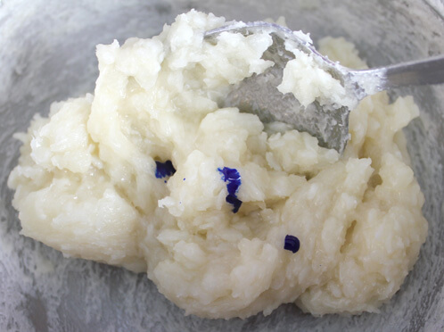 Color Tip: Experiment with different colorant usage rates to vary your blue hue. Add more colorant for a darker blue and less colorant for a lighter grey/blue. Mix the colorant and soap together well in the double boiler over medium heat.