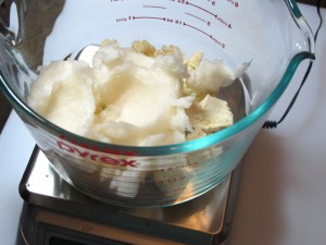 Step2: Weigh out your solid oils and melt. Melt just until melted…don’t overheat.