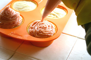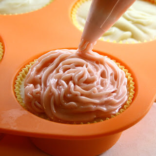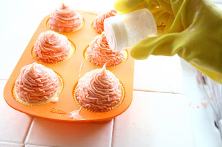 My cupcakes (4) look like spaghetti cupcakes and the rest of the frosting got really hot and went into gel phase, so I poured into a mold as well as I could.