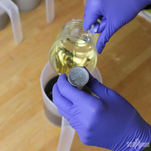SAFETY FIRST: Suit up for safe handling practices! That means goggles, gloves and long sleeves. Make sure kids, pets, and other distractions and tripping hazards are out of the house or don’t have access to your soaping space. Always soap in a well-ventilated area.