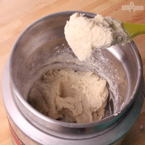 The soap we used in this recipe was fully cured cold process. If your soap is fresher, you may need a little less water. I would recommend adding small amounts until you reach the mashed potato consistency shown above 🙂 That’s the nice thing about rebatch, you don’t have to be quite as exact!