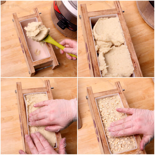 EIGHT: We used a Round Silicone Spoon to scoop the soap into the mold. Because it’s so thick, remember to tamp the mold on the table to eliminate any trapped air bubbles. Garnish with rolled oats.