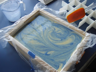 Gently tapping on the counter to encourage air bubbles to rise to the surface is a good way to make sure you don’t get white bubbles in your finished bars. Remember to keep your eye protection on for this step.