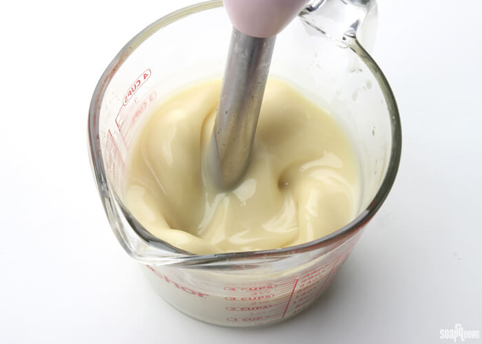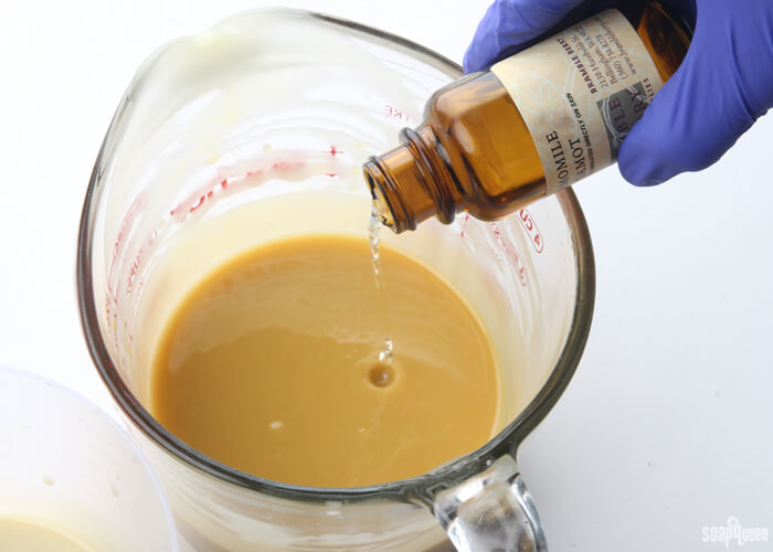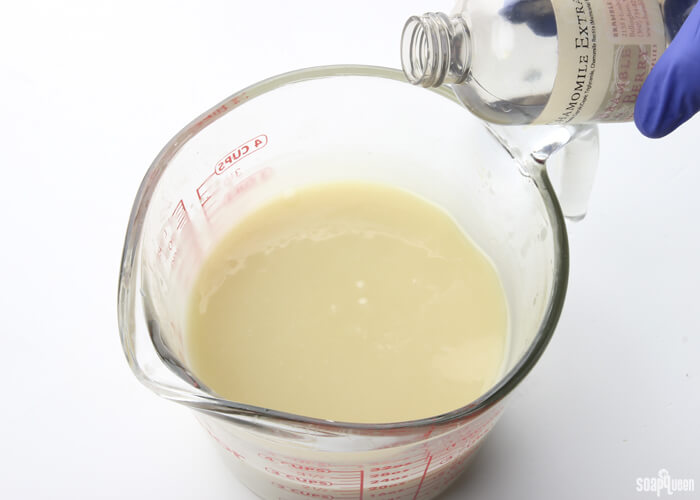 - Once you’ve reached a light trace, add 1 tablespoon of chamomile extract and stir in with a whisk.