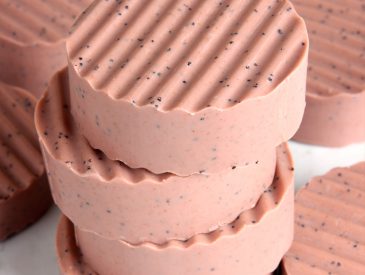 This Rosehip Melt & Pour Soap contains both rosehip powder and rose clay. The combination creates a soft pink color with plenty of skin-loving properties. Poppy seeds add texture and exfoliation.