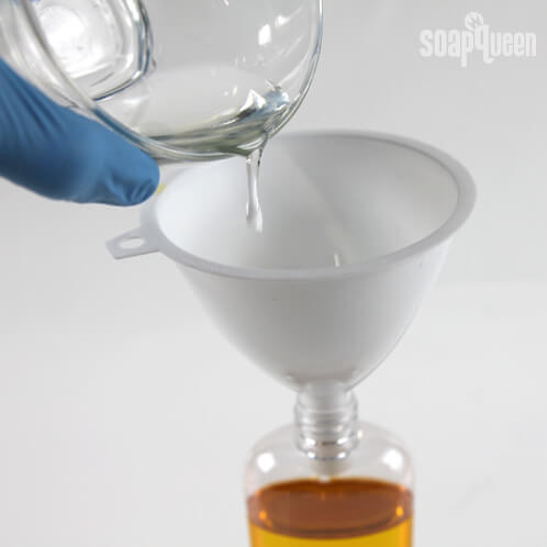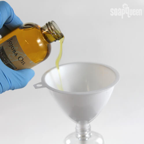 ONE: Pour about 3.5 oz of Jojoba Oil into one of the 4 oz. Plastic Bottles. You can free hand the pour, but we like using a funnel to avoid messy spills.