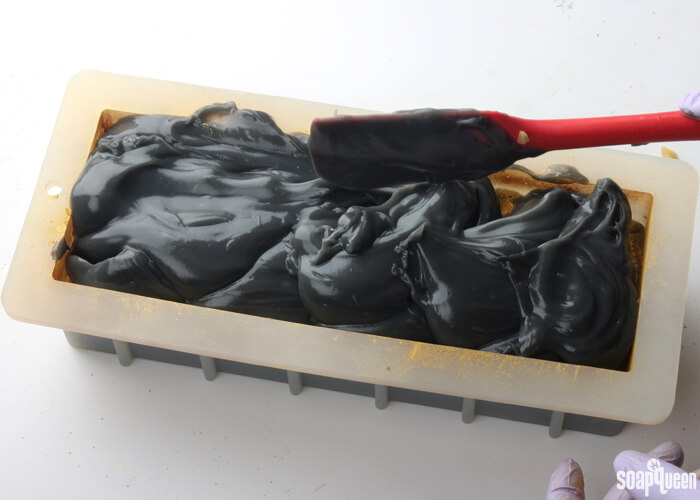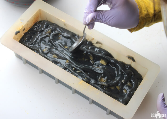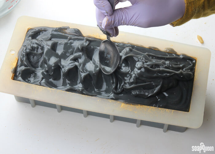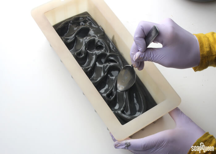 - Use a spoon to gently spread this soap throughout the mold and create a soft textured top.