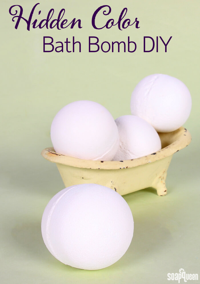 Bath bombs are one of my favorite projects. They are fast and easy to make and, they give the gift of instant gratification because you can use them right away. The combination of fizzing, color and scent creates a fun bath experience. These Hidden Color Bath Bombs introduce the element of surprise – on the outside these mondo bath bombs are white, but once you introduce them to the tub they reveal a hidden color!