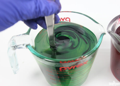 FOUR: Add shavings of the Hunter Green Wax Dye Block to the uncolored container until a rich green color is achieved.
