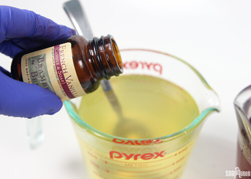 THREE: Add 1 oz. of French Vanilla Soap and Candle Fragrance Oil into both containers, and stir until fully incorporated.