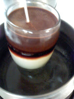 In hindsight, I poured the wax too warm. And, judging from the chemical smell coming from the brown colored part, I used too much color as well. Whoops.